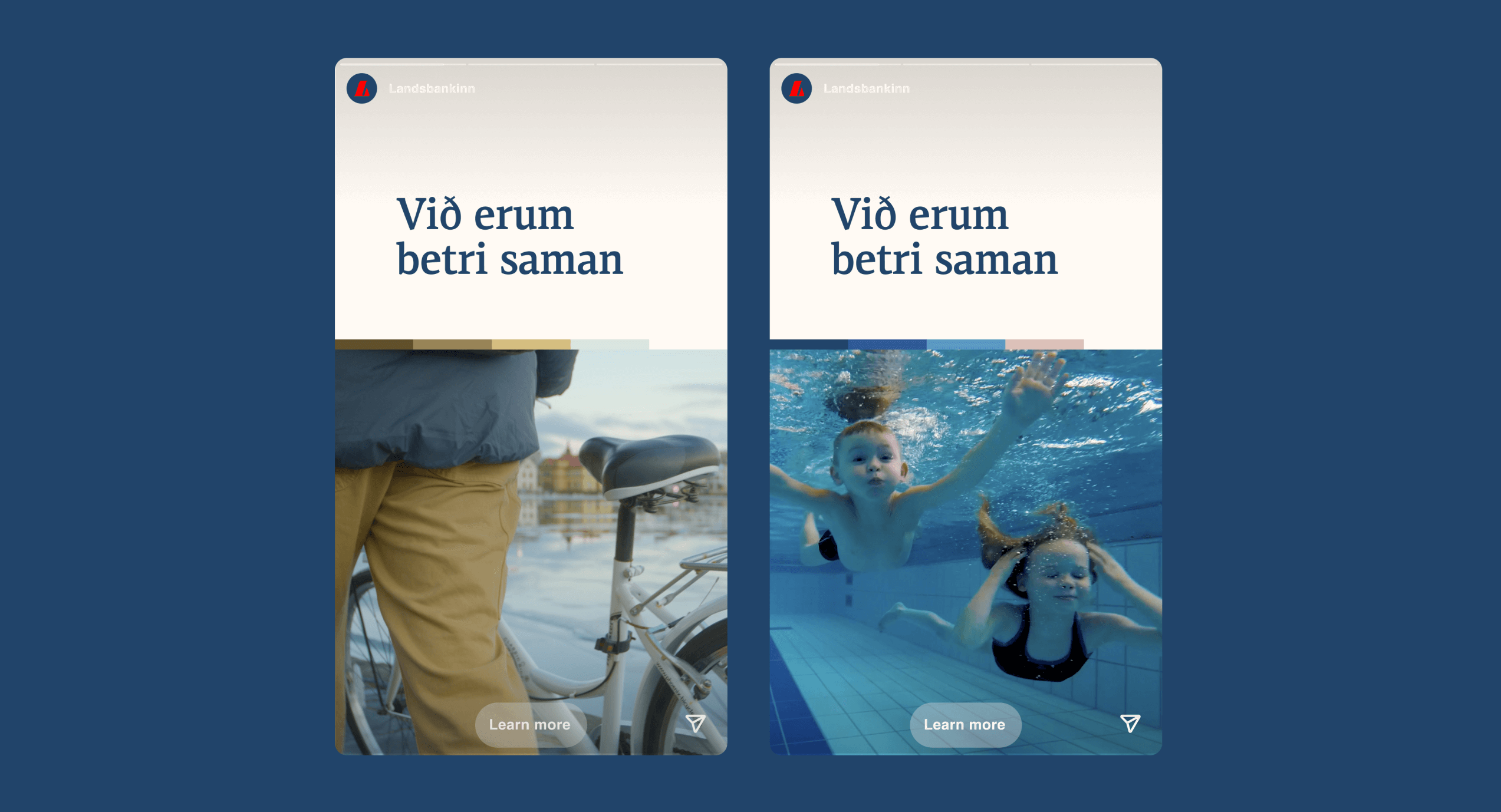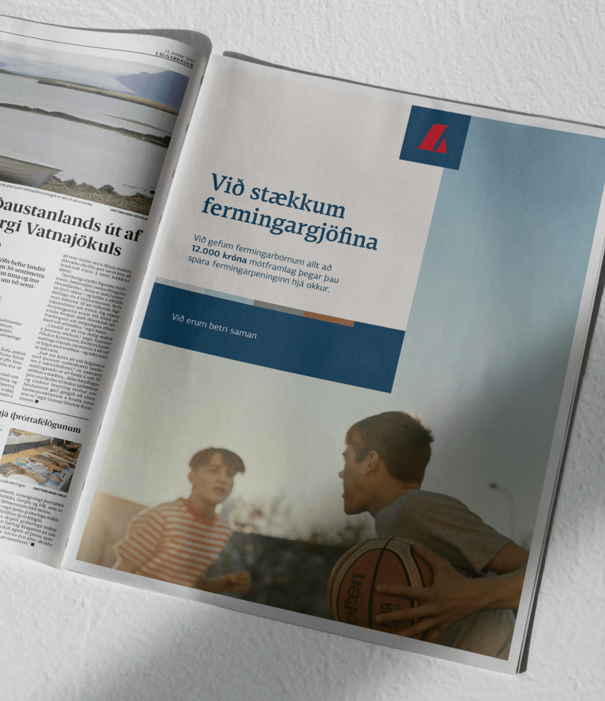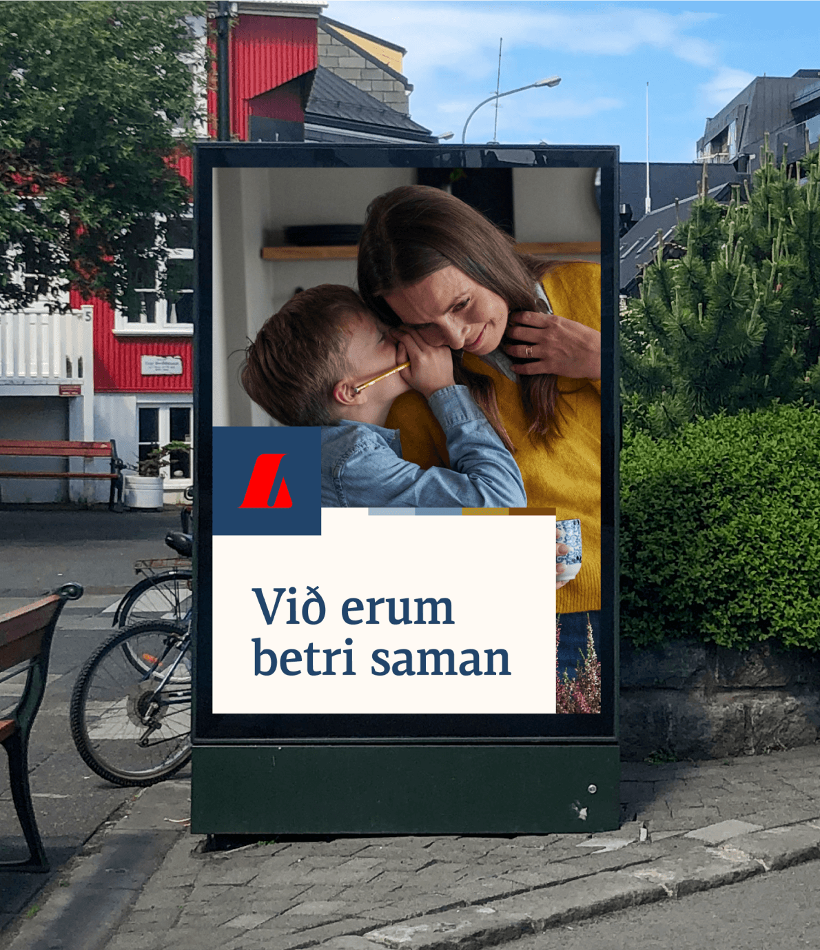 The headline “Við erum betri saman” (“We are better together”) encapsulates the goals of the project and communicates the sentiments we aimed for. It shifts the focus onto the customers rather than the bank, it is concise, clear, and sincere, and is motivating, inclusive, and optimistic.